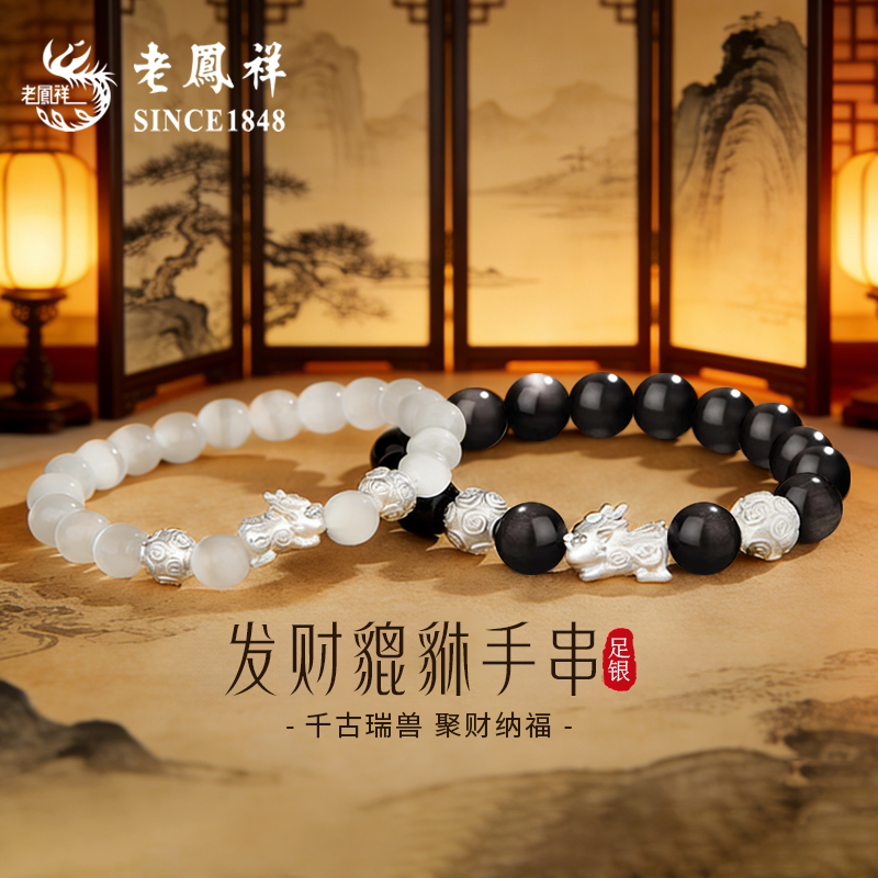 老凤祥足银招财貔貅手串女纯银一对情侣款手链新款生日礼物送女友