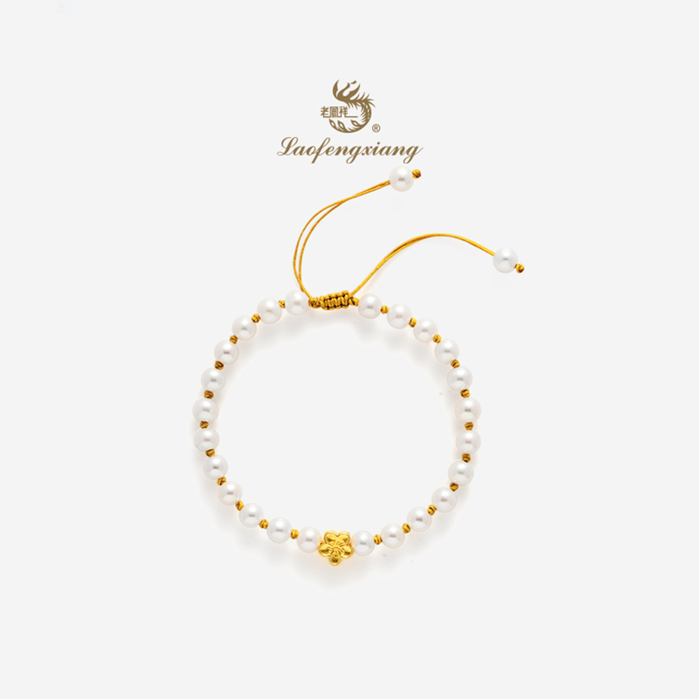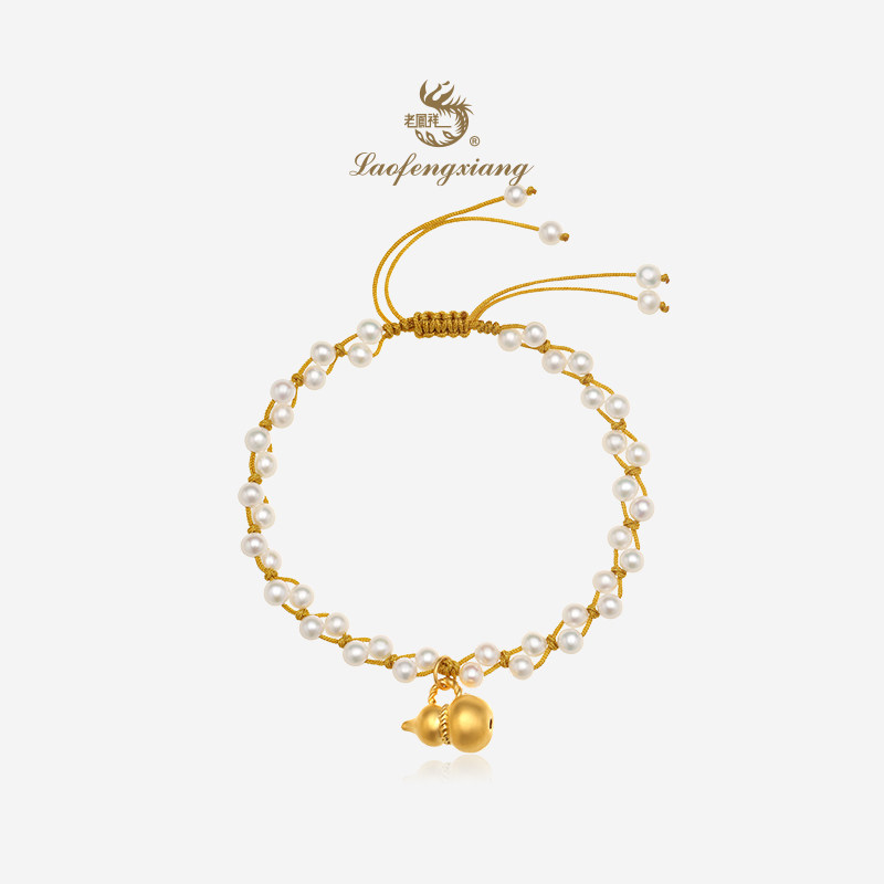 老凤祥黄金有钱花珍珠手链足金转运珠可调节手绳 送女友生日礼物
