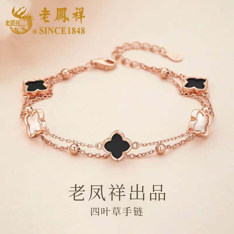 老凤祥925银幸运四叶草手链女足银手串小众纯银手饰情人节送女友