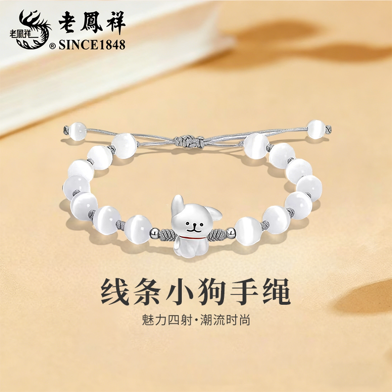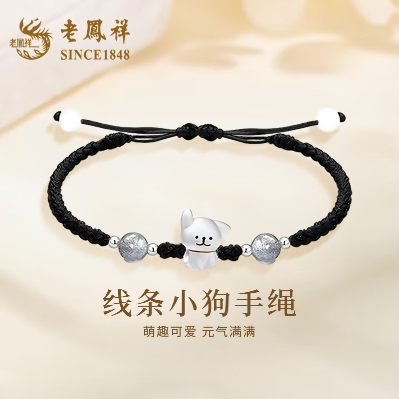 老凤祥足银线条小狗手绳女士2026新款纯银手链手饰生日礼物送女友
