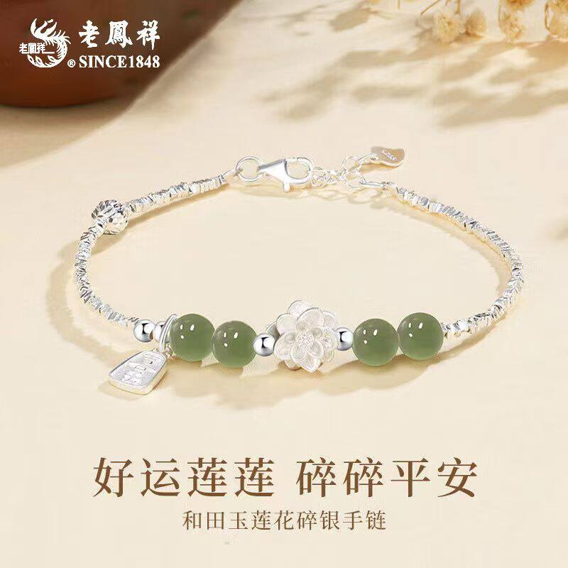 老凤祥好运连连925银莲花手链女纯银轻奢小众女友生日礼物送女友
