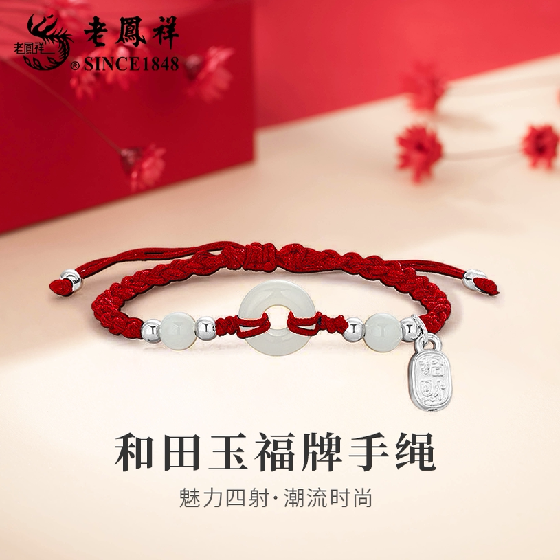 老凤祥平安扣手链男女新款和田玉红手绳本命年首饰生日礼物送女友