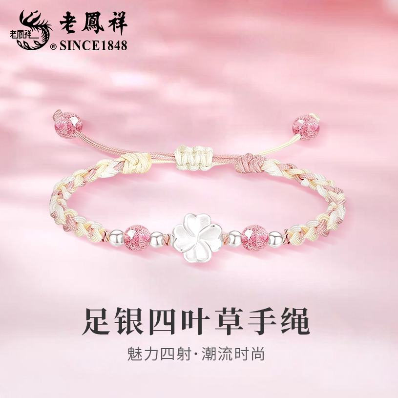 老凤祥足银四叶草手绳手链女新款轻奢时尚小众手饰生日礼物送女友