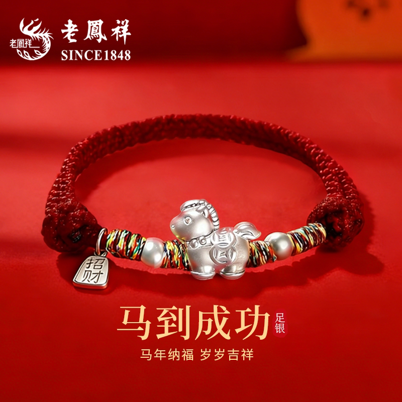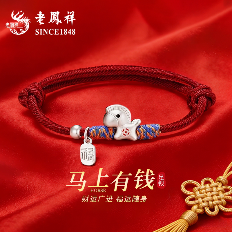 老凤祥足银马上有钱手链情侣款生肖马本命年银手绳生日礼物送女友