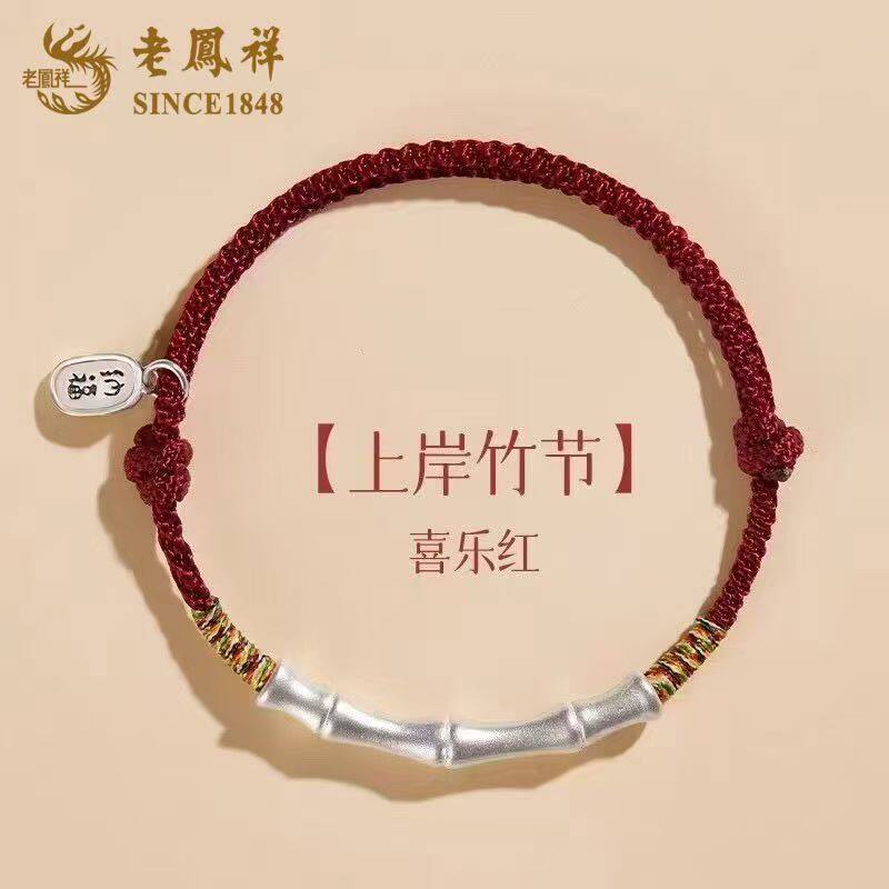 老凤祥纯银上岸竹节手链女足银本命年手绳福牌编绳生日礼物送女友