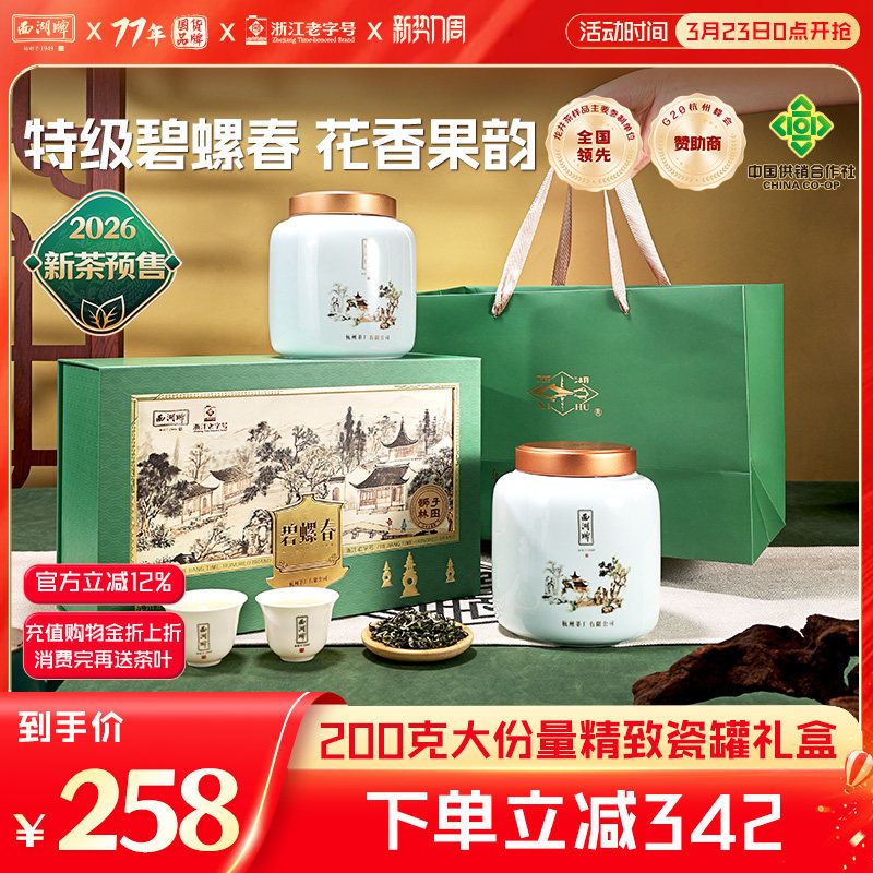 2026新茶预售西湖牌特级碧螺春200g茶叶瓷罐礼盒装绿茶送礼送长辈