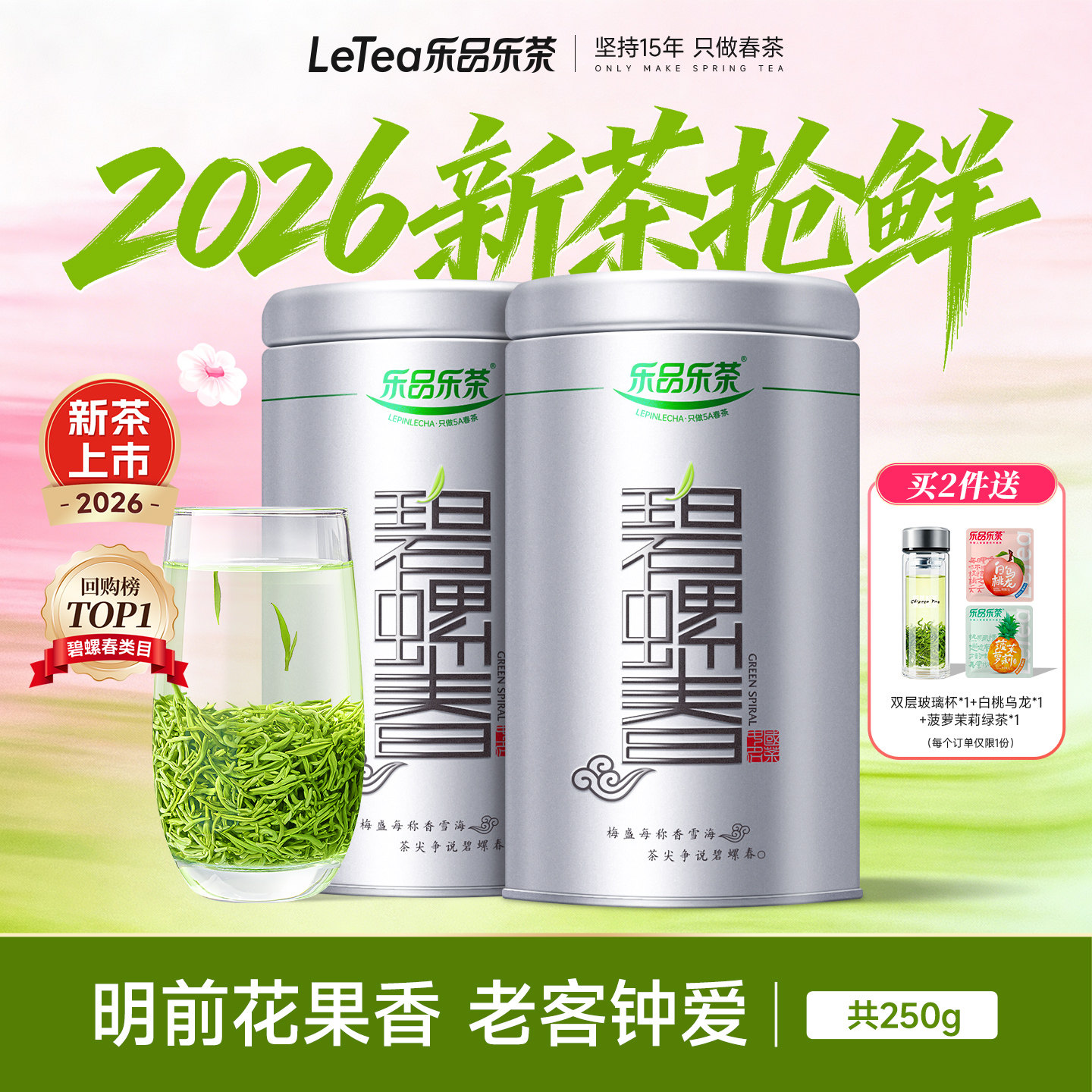 乐品乐茶2026新茶预售碧螺春春茶明前绿茶自己喝特级茶叶嫩芽250g