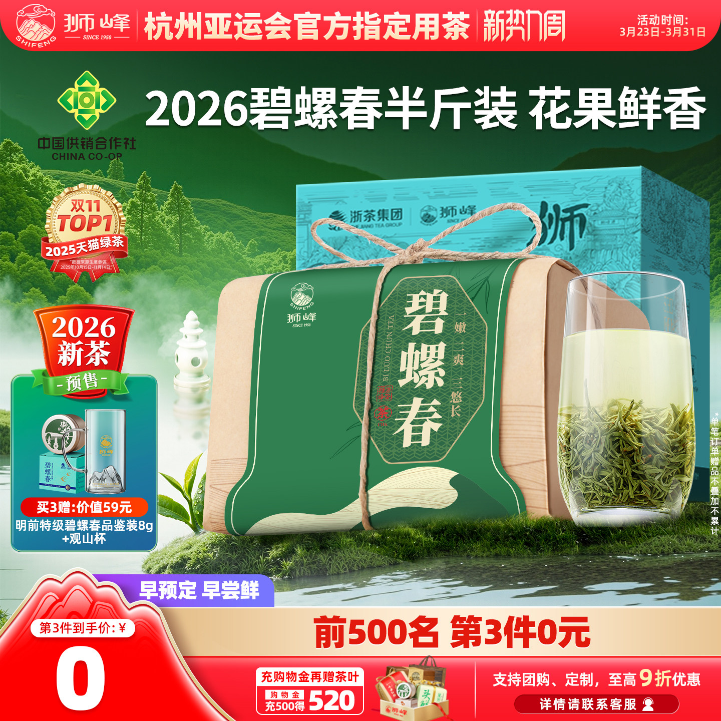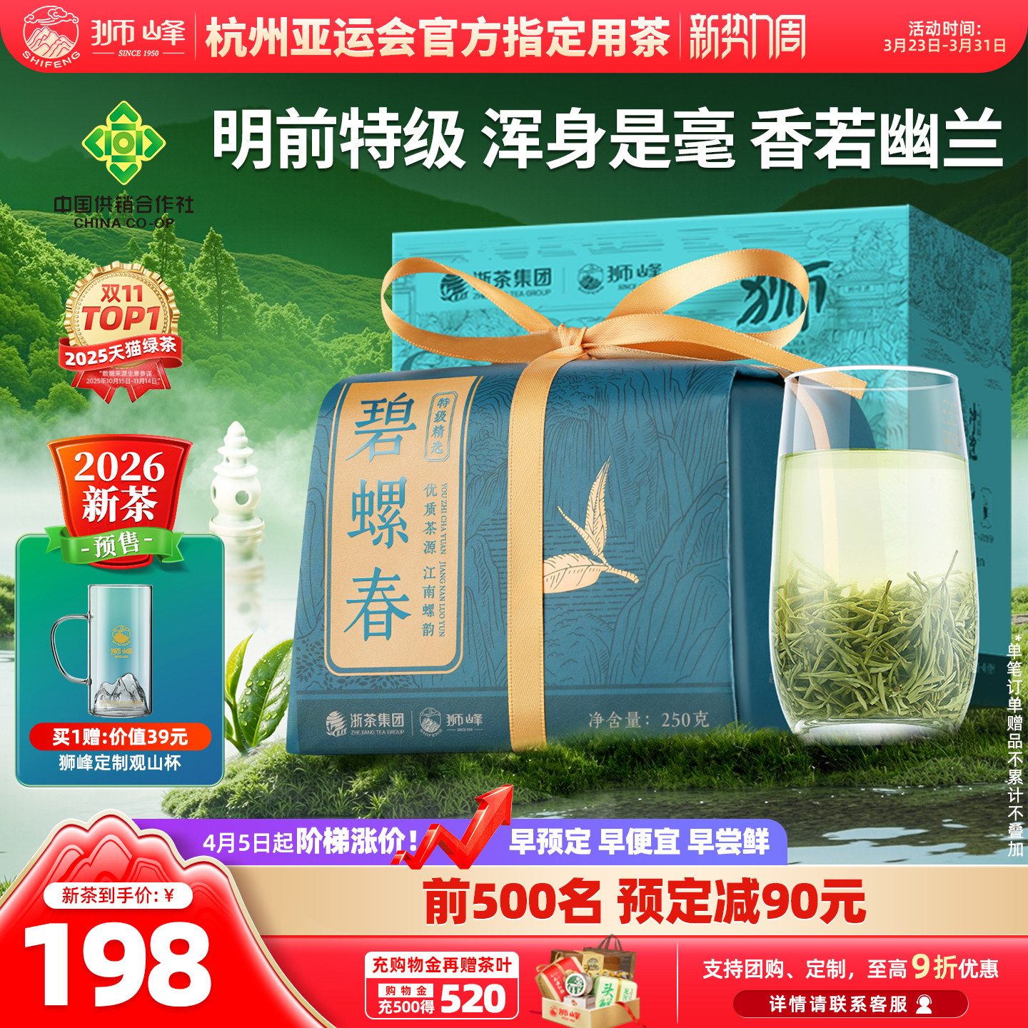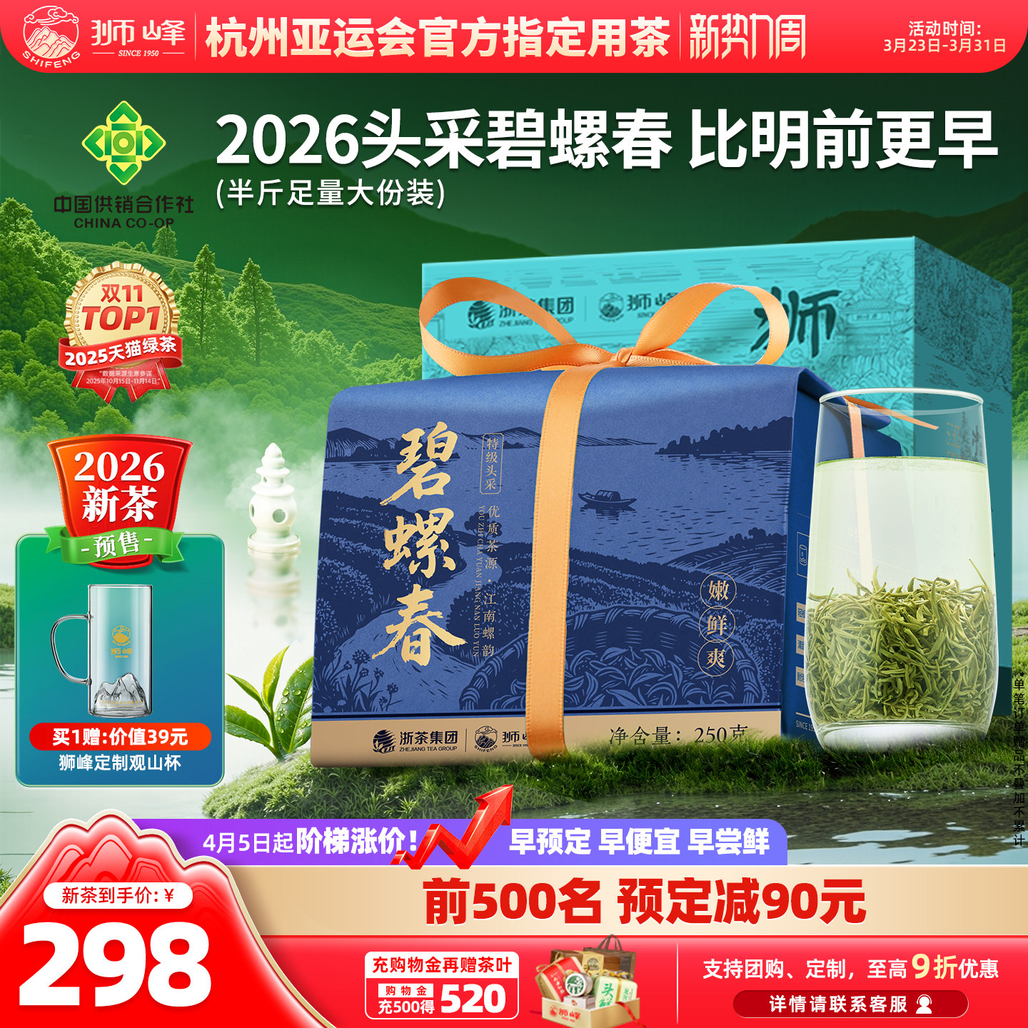 狮峰牌特级优选明前碧螺春2026新茶预售春绿茶叶自己喝250g旗舰店