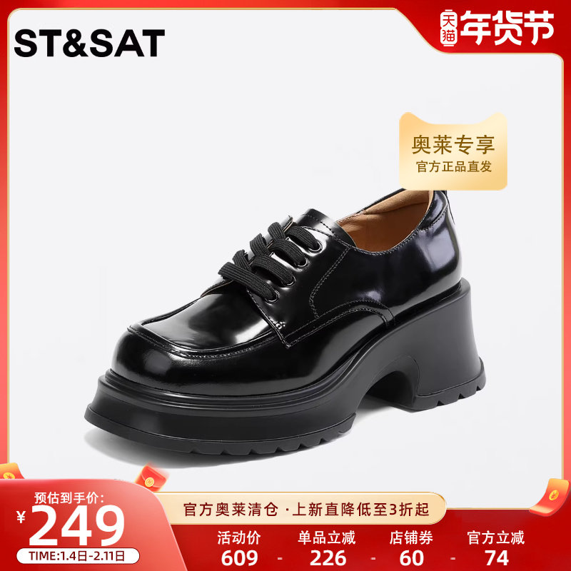 真皮厚底小个子乐福鞋女2025秋季新款魔术贴小皮鞋百搭粗高跟女鞋