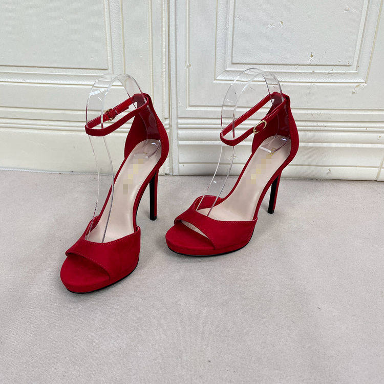 外贸原单shoes厚底粗高跟女鞋简约时尚防水台圆头露趾一字扣凉鞋
