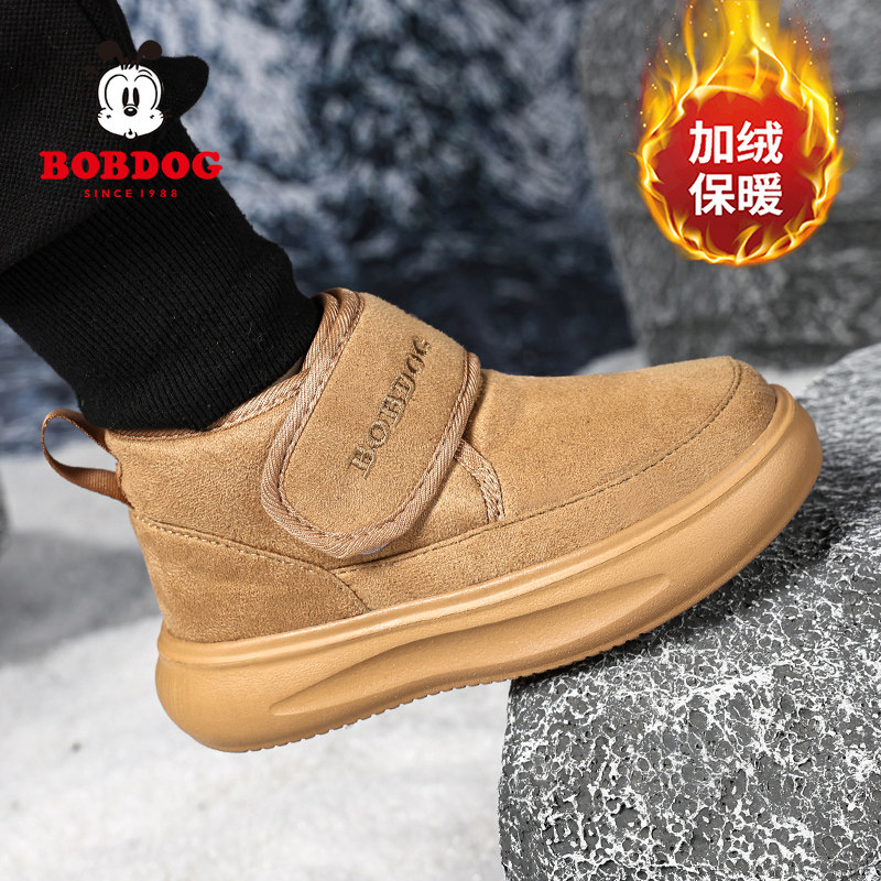 巴布豆儿童雪地靴冬季加绒加厚男童冬鞋中大童学生保暖女童大棉靴