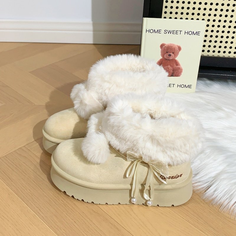 蝴蝶结雪地靴女2022年新款短筒冬季加绒保暖短靴学生防滑面包棉鞋