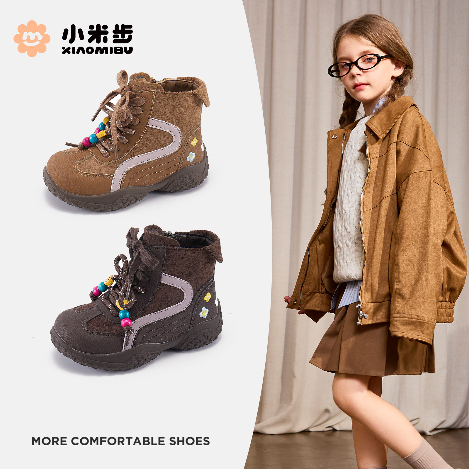 小米步女童靴子2025冬季新款加绒休闲短靴儿童保暖时尚马丁靴学生