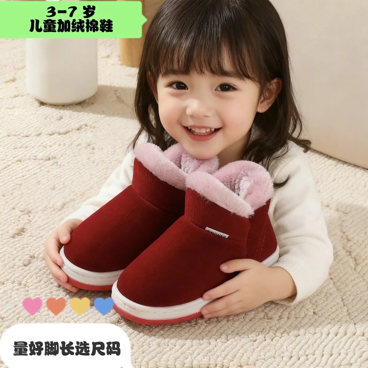 3-8岁男女宝宝儿童冬季棉鞋小学生加绒加厚防滑保暖雪地靴儿童鞋