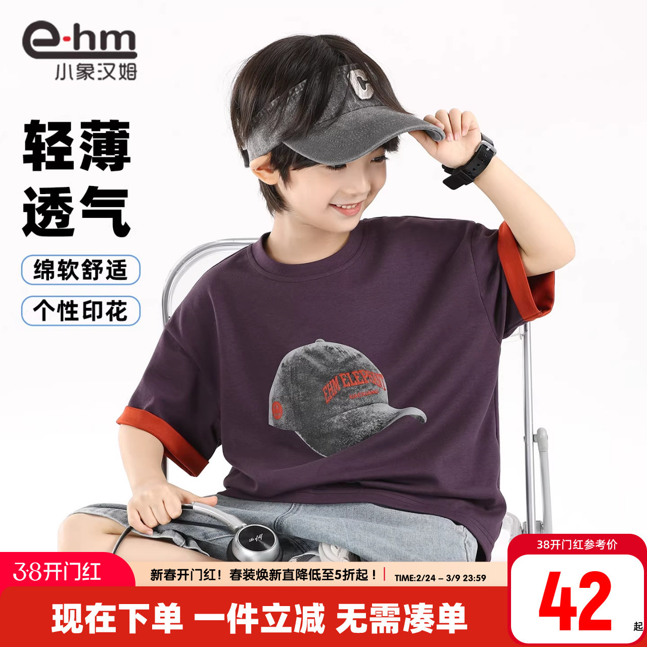 小象汉姆童装男童短袖t恤儿童体恤衫2026夏装新款男孩夏上衣洋气