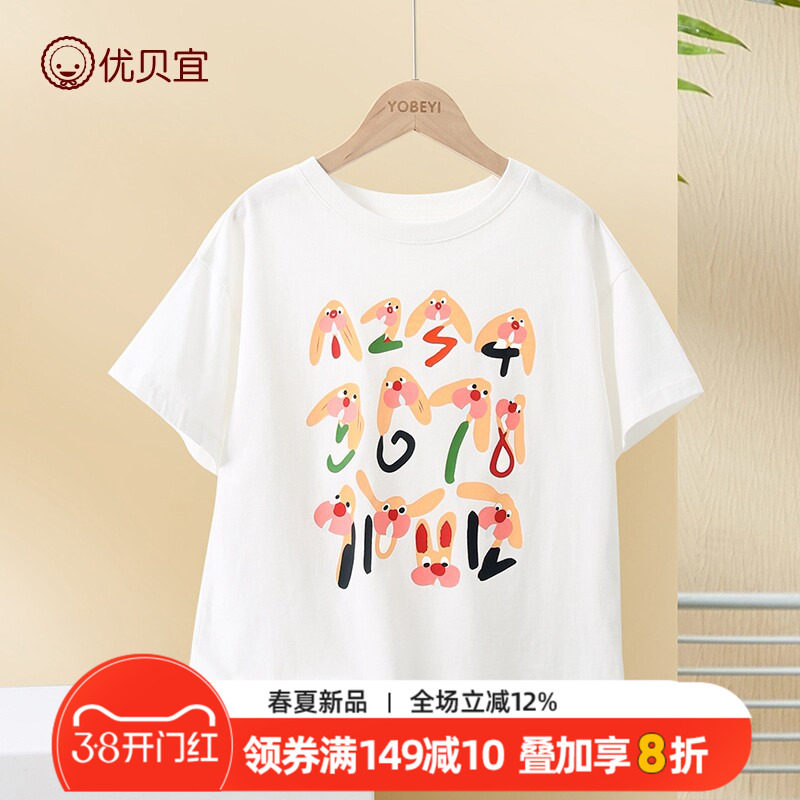 优贝宜童装儿童t恤短袖夏装女童夏季纯棉宝宝薄款上衣男童体恤潮