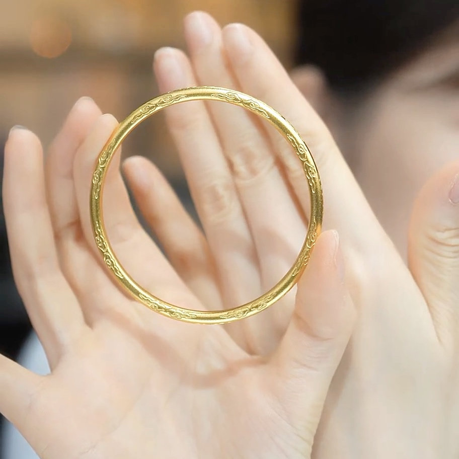古法传承金包银卷草纹手镯实心素圈祥云手环手链情人节礼物送女友