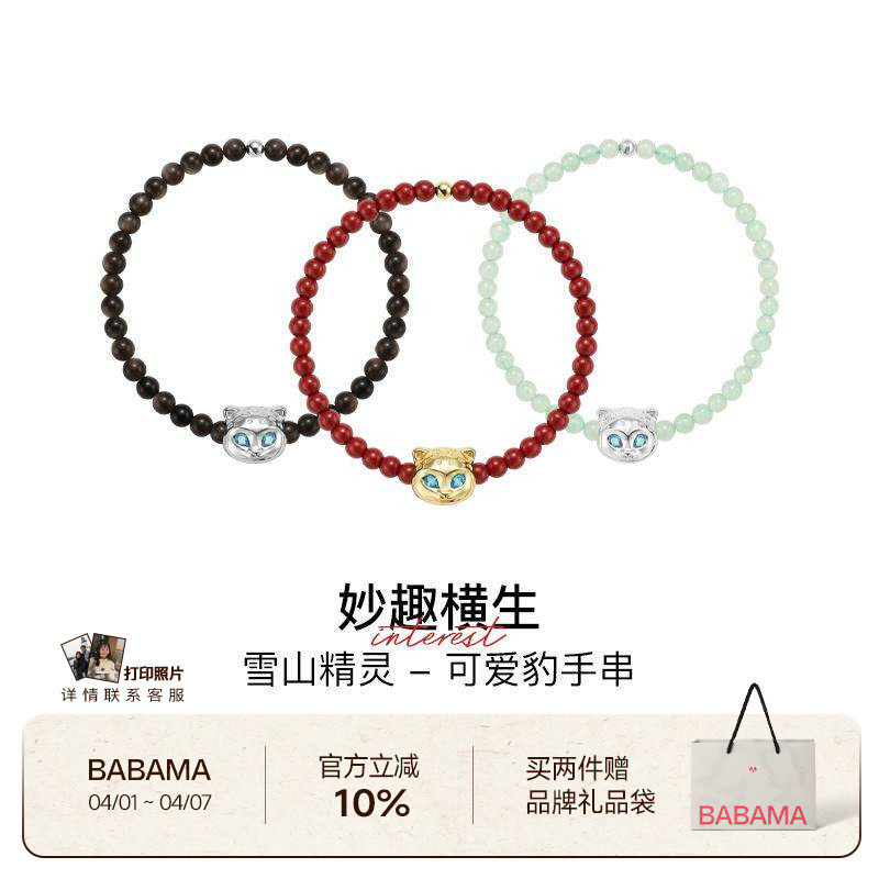 【生日礼物】babama雪豹公益系列手链情侣款朱砂可爱豹黑曜石手串
