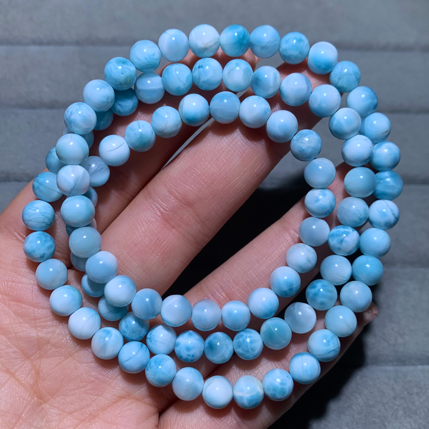 天然拉利玛海纹石三圈手链淡蓝色玉化海纹石水晶礼物饰品情侣款女