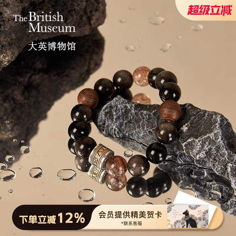 大英博物馆黑曜石手串男款手链男士情侣手链男友男生生日礼物轻奢
