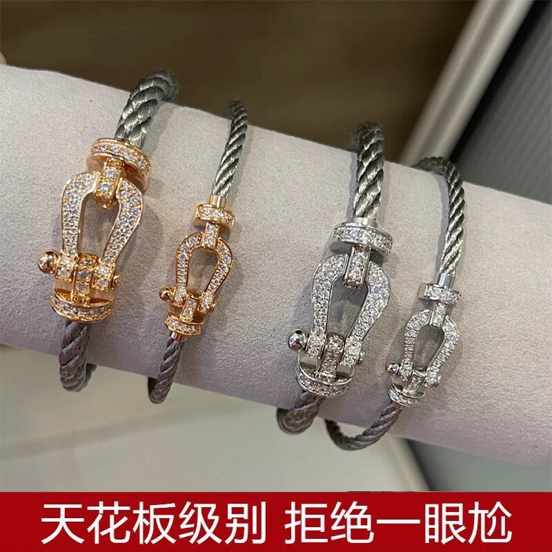 费雷德马蹄扣镶钻精钢丝手链18k 金轻奢情侣款手绳大号男女本命年