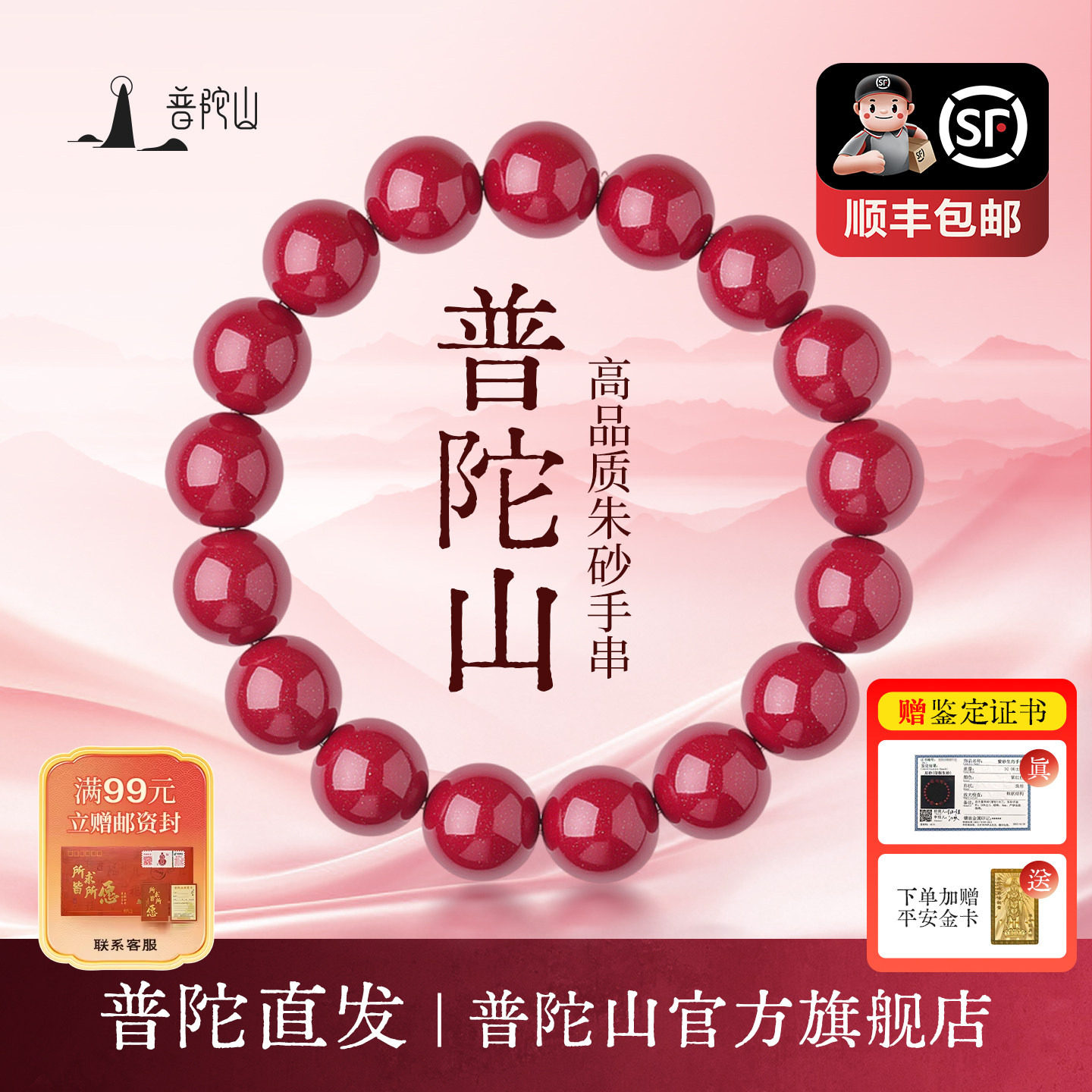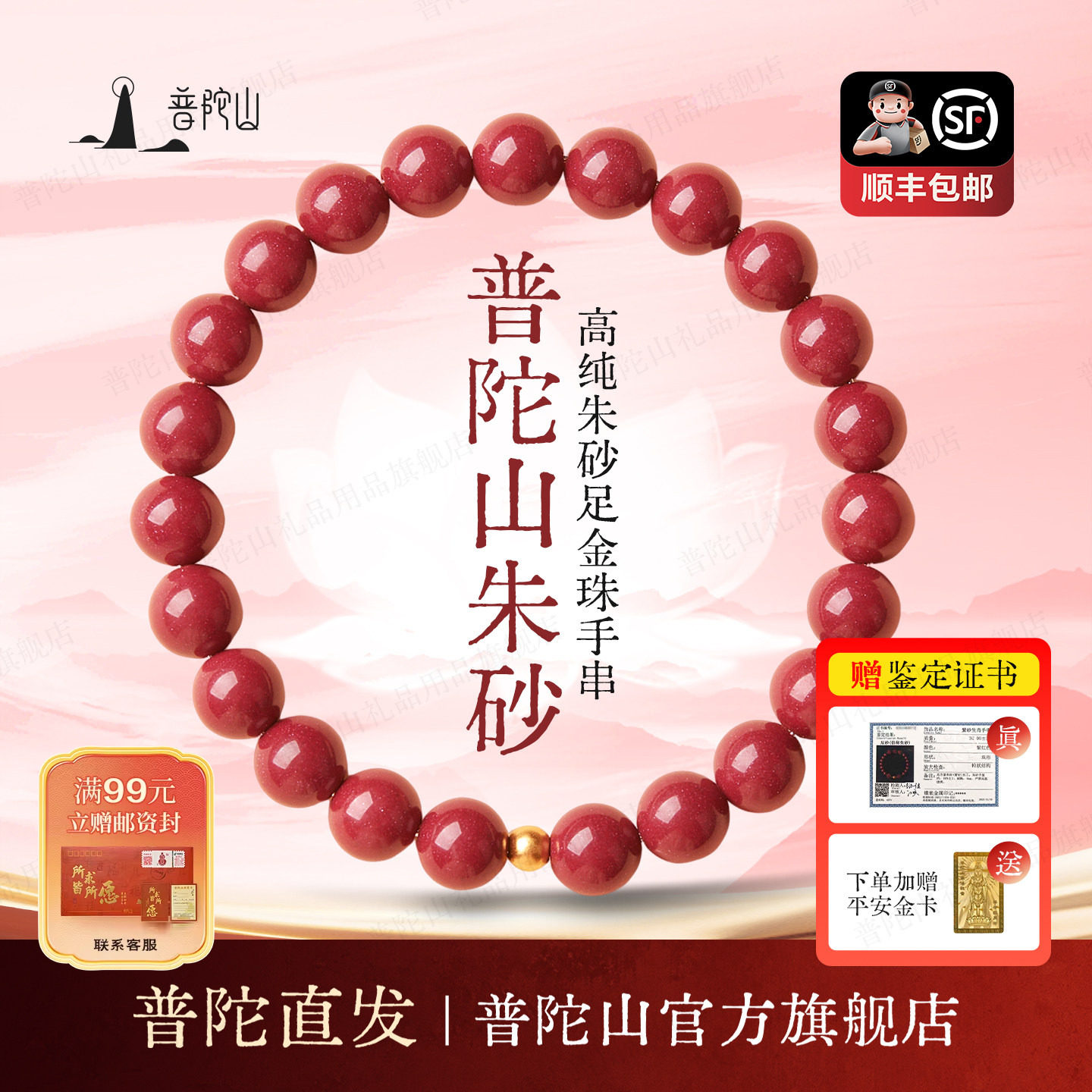 普陀山马本命年情侣女款朱砂手串正品官方旗舰手链999足金珠礼物