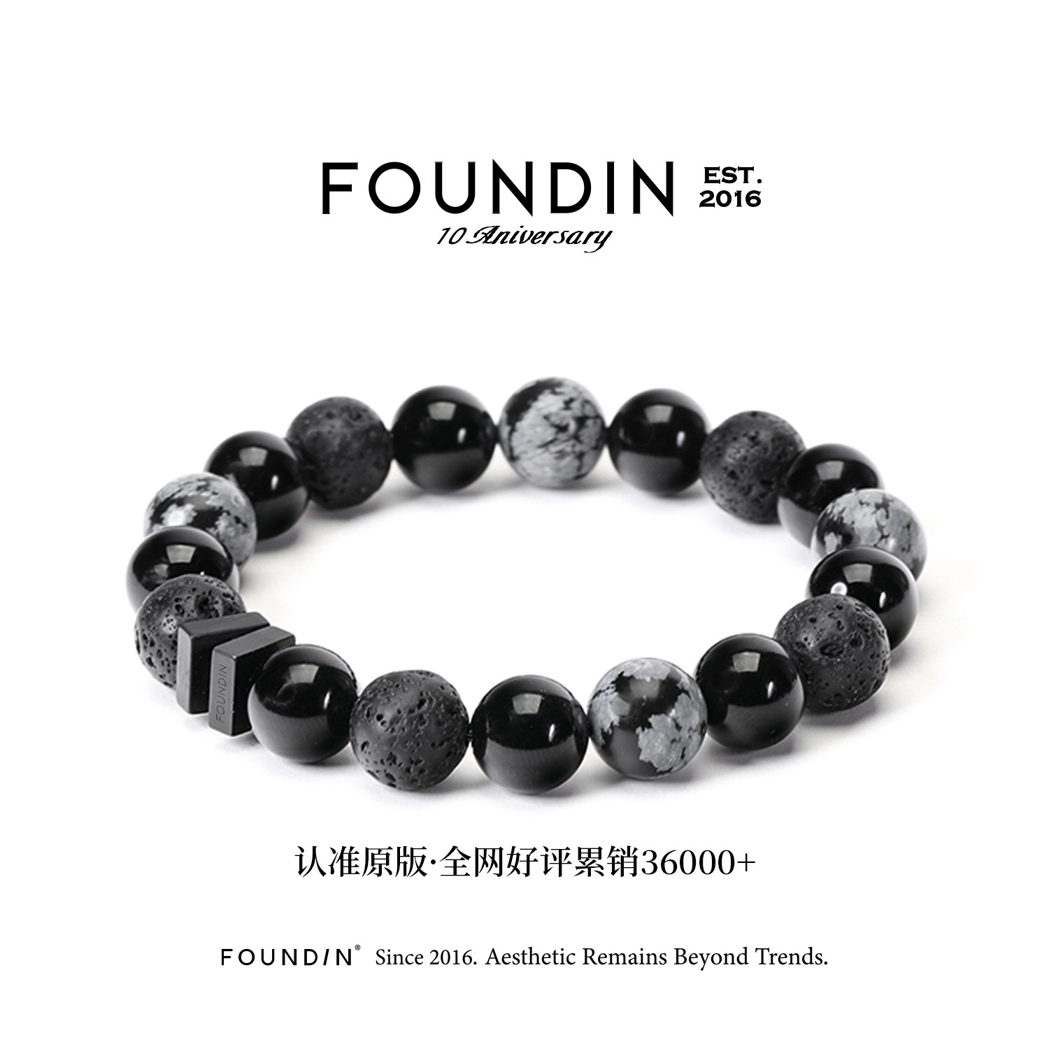 FOUNDIN凡汀 黑玛瑙雪花石手串男生 情侣手链轻奢高级感 刻字礼物