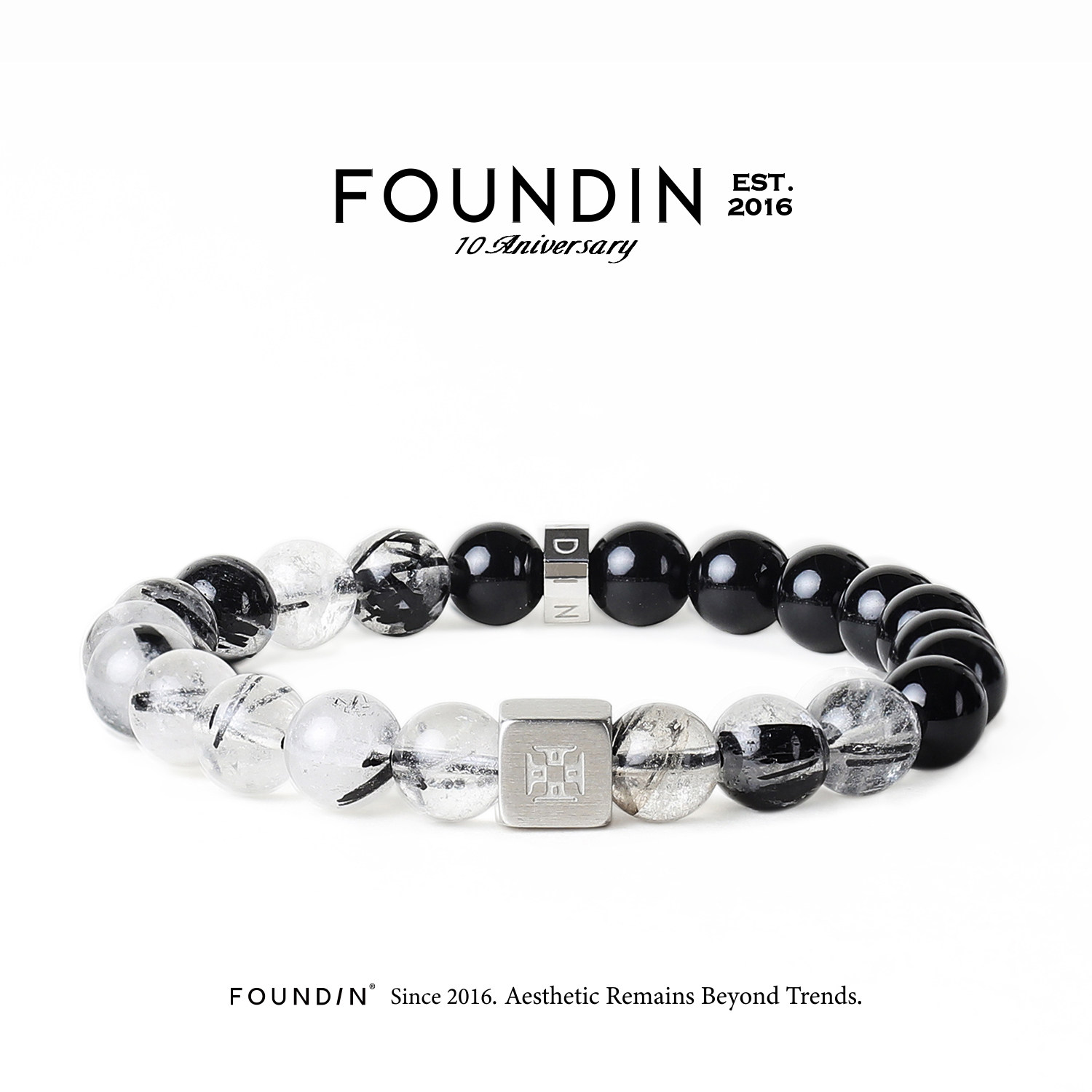 FOUNDIN凡汀 五行系列金水手串 天然黑发晶玛瑙手链刻字生日礼物