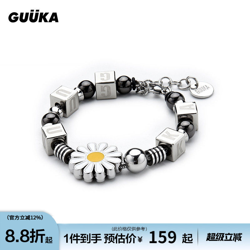 王鹤棣同款GUUKA潮牌小雏菊手链ins嘻哈情侣方块logo手链礼物百搭