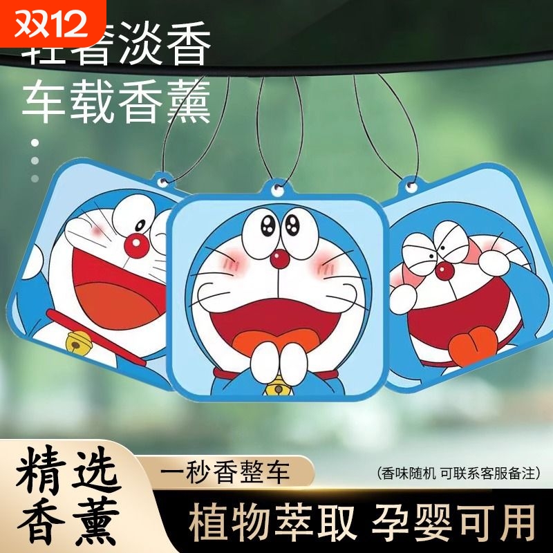 香片车载汽车挂饰叮当猫挂件香薰蜡片膏持久淡香水氛车内桂花挂式