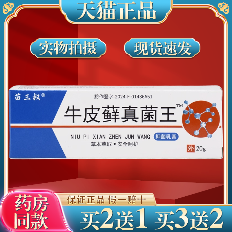 买2送1苗三叔牛皮藓真菌王抑菌乳膏正品20g/盒成人皮肤外用止痒