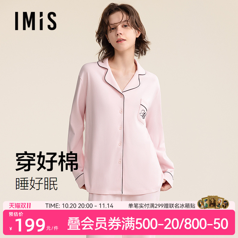 爱美丽纯棉翻领简约家居服女2025秋季新款长袖宽松可外穿睡衣套装