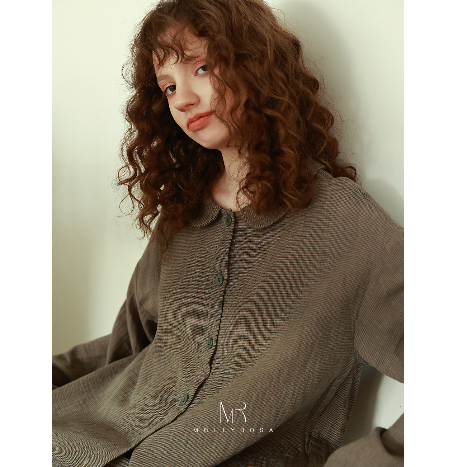 MollyRosa复古榛果|秋季睡衣女柔软纯棉长袖长裤翻领家居服套装新