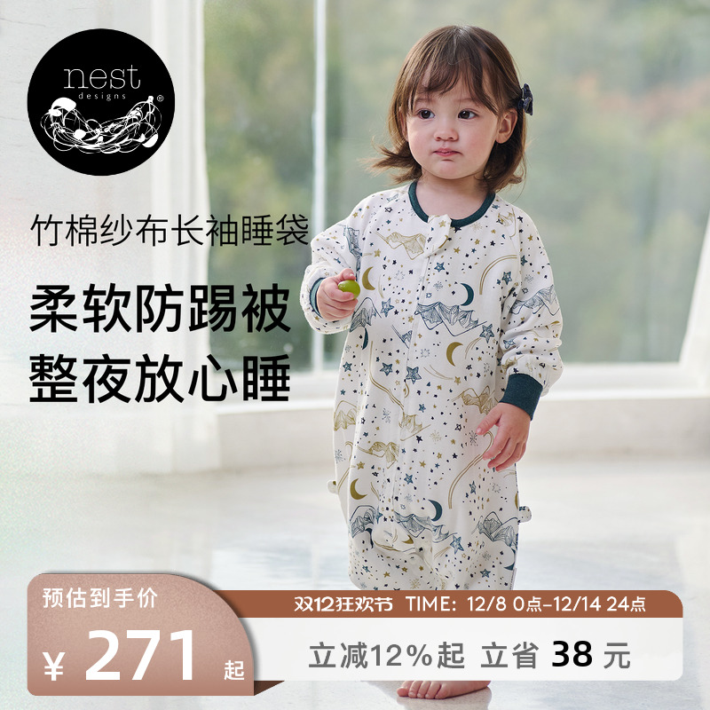 Nest Designs婴儿睡袋秋冬款竹棉纱布宝宝睡袋四季通用分腿防踢被