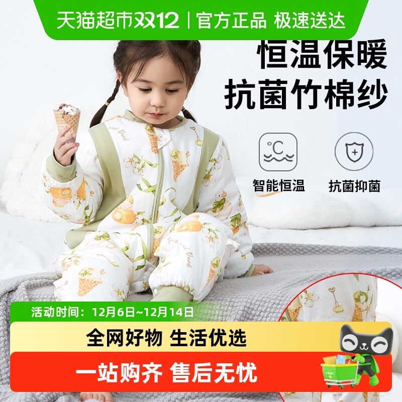 英氏儿童恒温睡袋分腿秋冬7A抗菌春秋新款宝宝婴儿冬季保暖防踢被
