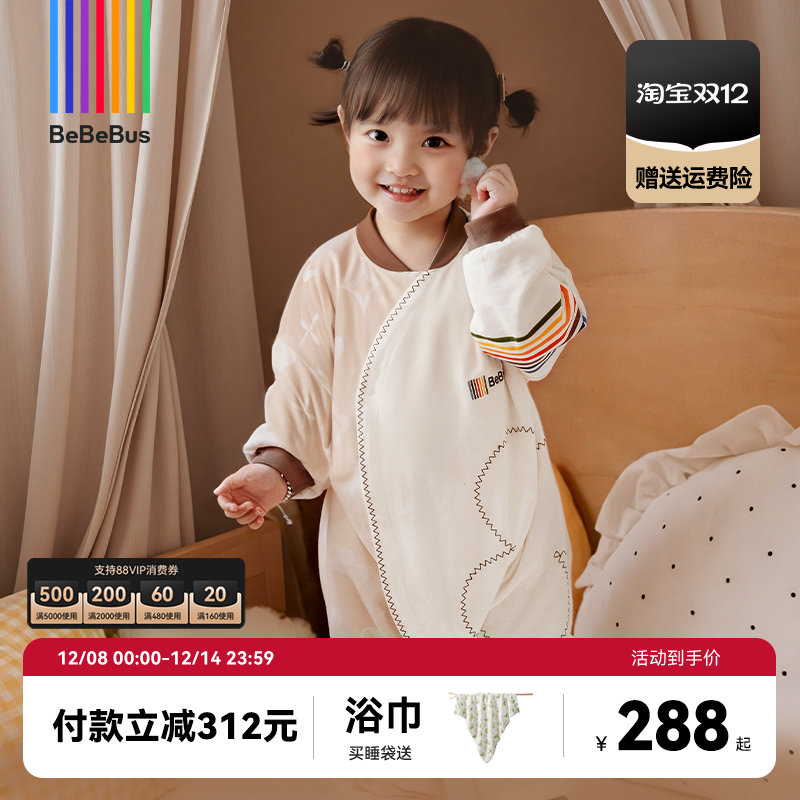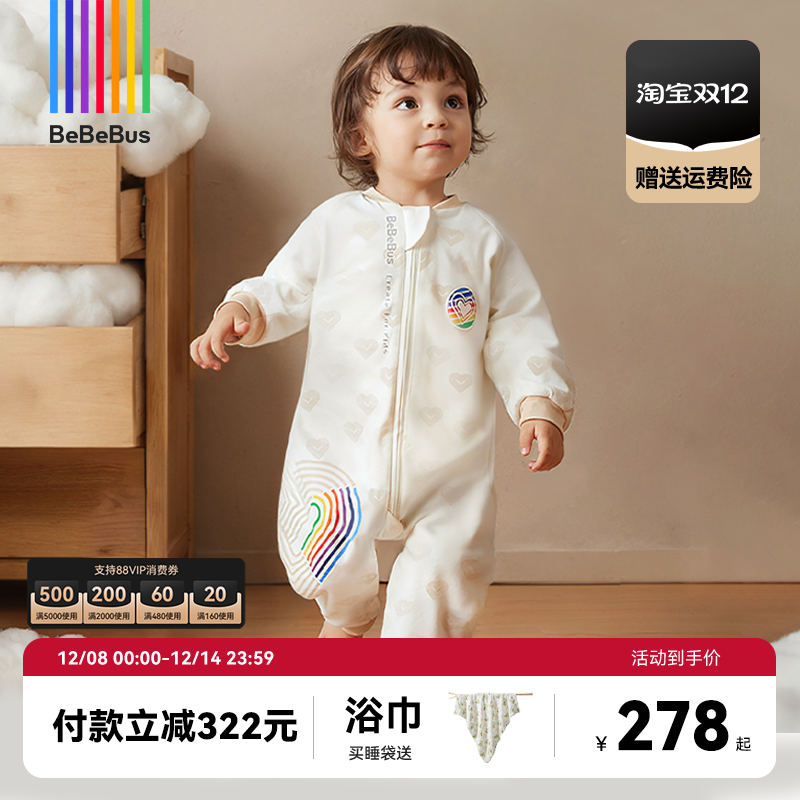 BeBeBus婴儿睡袋春秋儿童恒温分腿连体睡衣宝宝四季秋冬睡袋