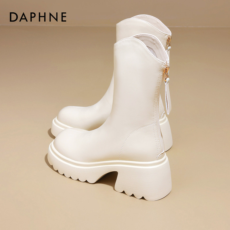 达芙妮白色短靴女2025新款秋冬短靴子女单靴女鞋瘦瘦靴厚底马丁靴