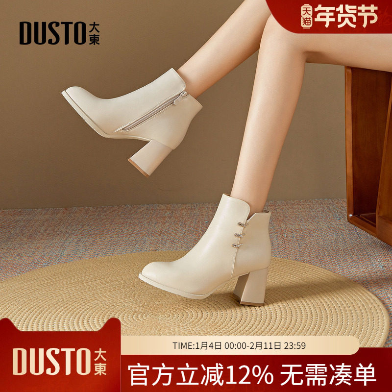 大东dd白色短靴女鞋2025冬季新款女靴气质高跟鞋妈妈鞋法式瘦瘦靴
