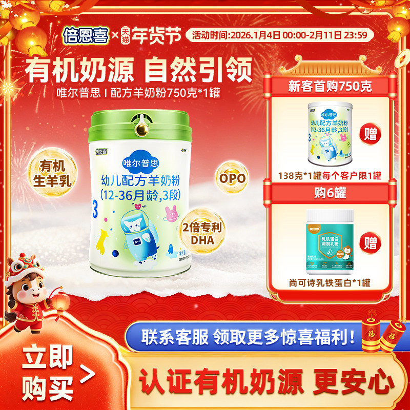 欧铂佳悠佳婴幼儿宝宝羊奶粉3段(12-36月龄)800g罐装 新国标