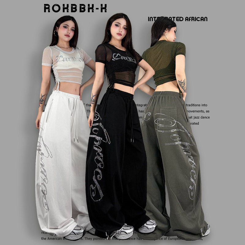 ROKBBK-K/布韩美式嘻哈风烫钻阔腿裤女街舞个性宽松休闲裤潮流
