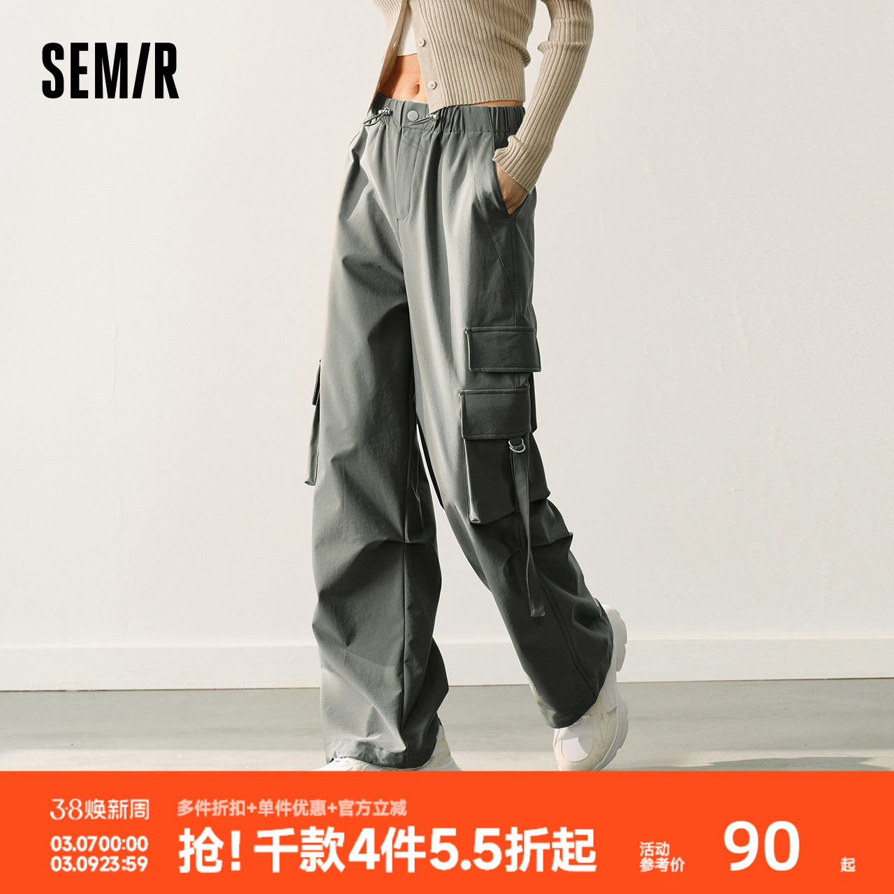 森马休闲裤女慵懒工装裤个性潮酷美式高街2025夏甜酷抽绳街头-TK