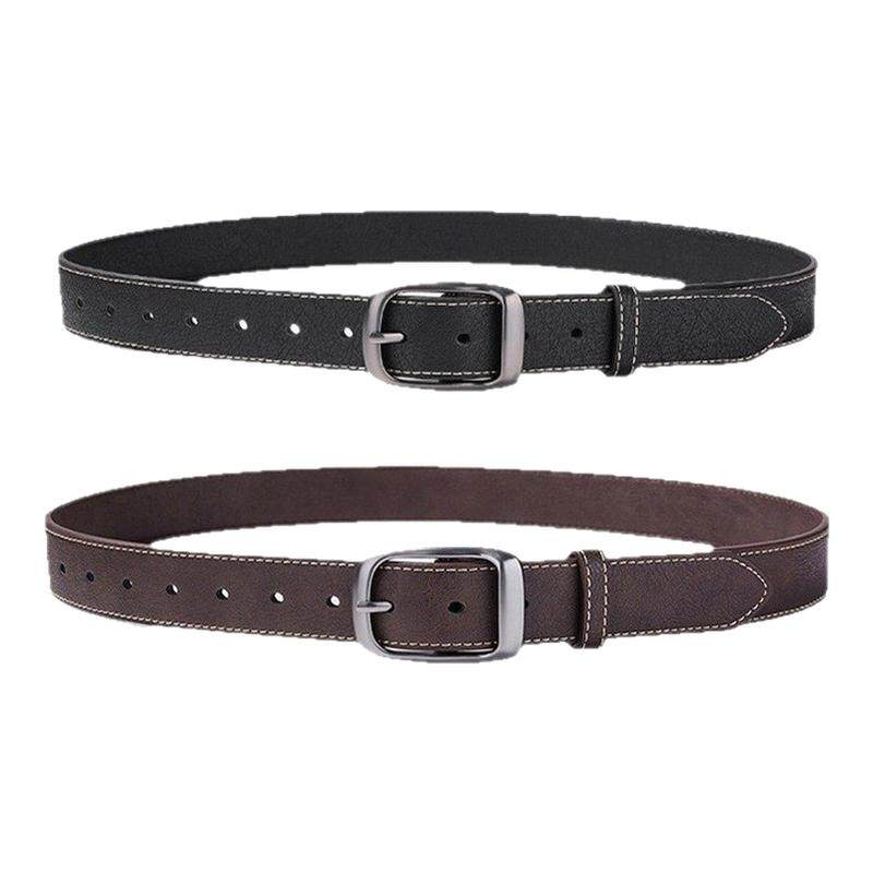手工头层牛皮皮带男潮年轻人针扣真皮腰带女休闲个性复古配牛仔裤