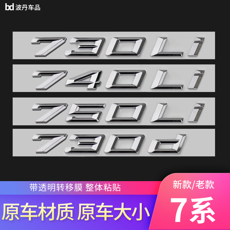 适用于新款宝马7系车标740Li 730Li 750Li 760li改装后尾标排量贴