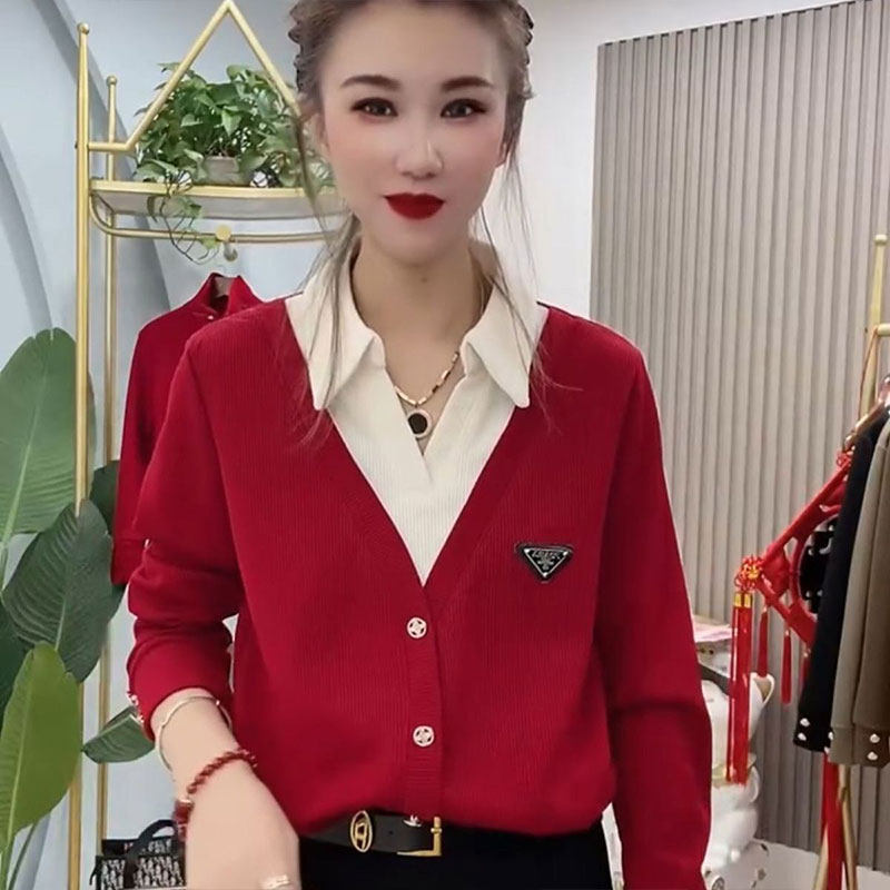 - 假两件衬衫 女 长袖 韩版
