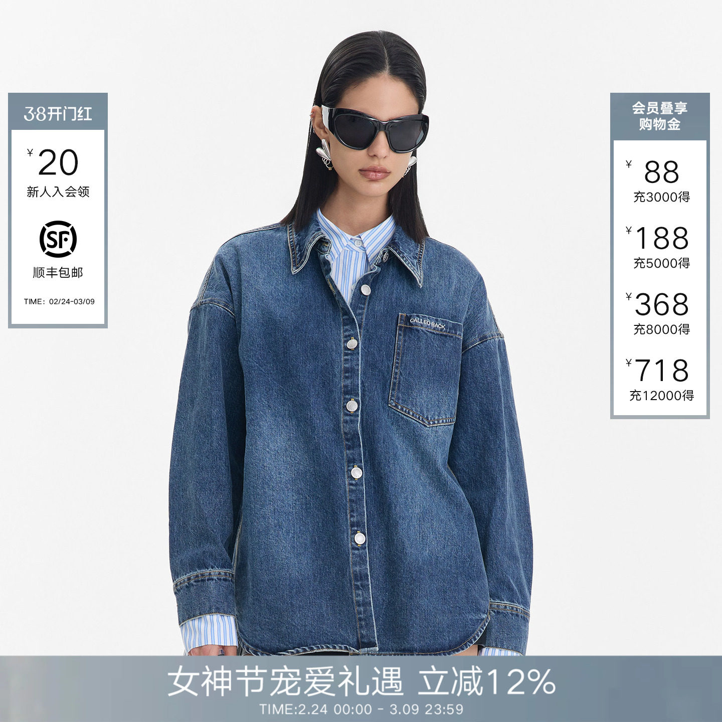 - 牛仔衬衫女