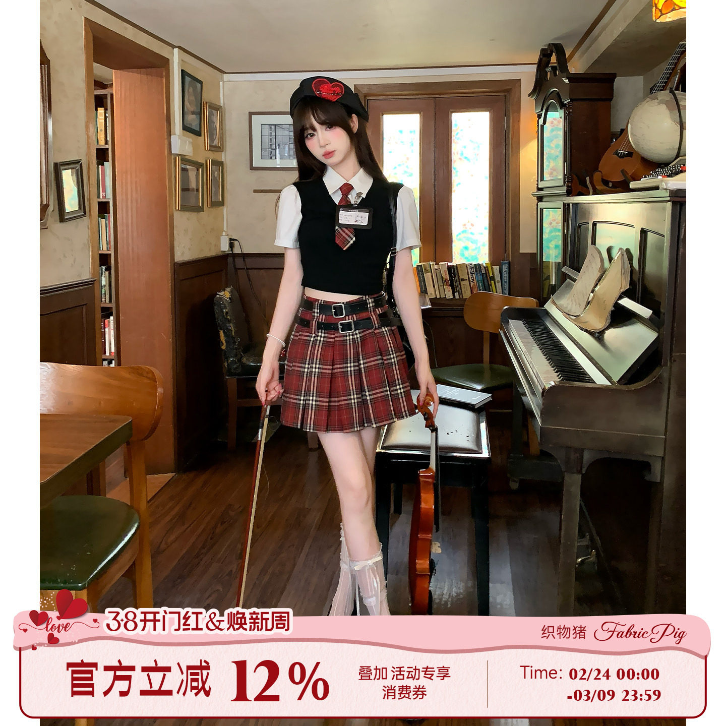 - 宽松上衣学院风