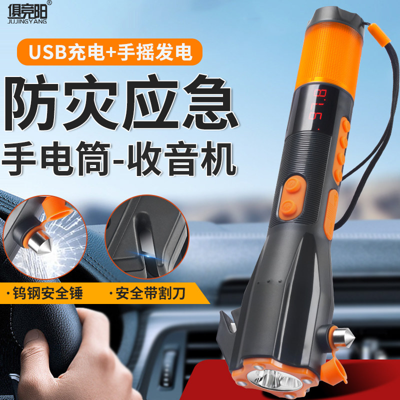 车载手电筒手摇发电收音机充电宝多功能消防应急防身汽车用安全锤