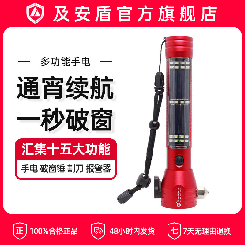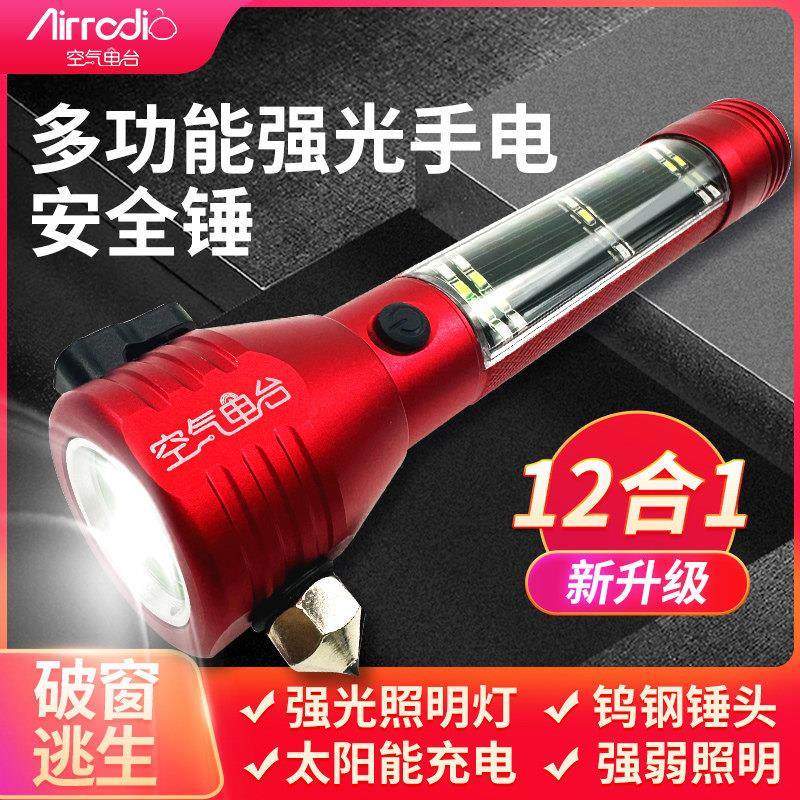 正品车载多应功能手电筒可锤充电逃生全防身强光安太阳能消防专用