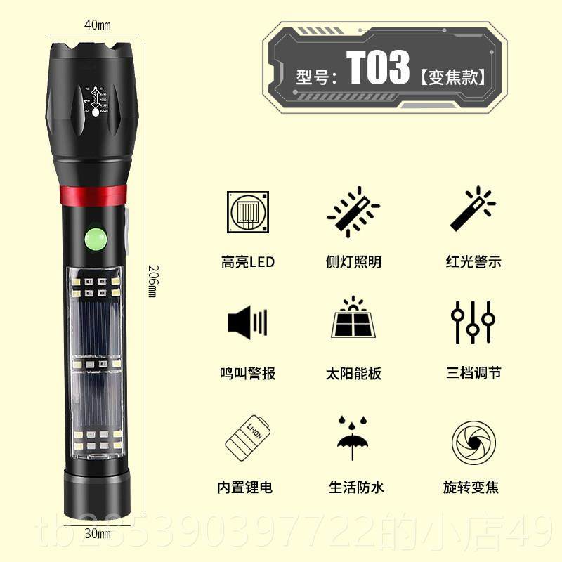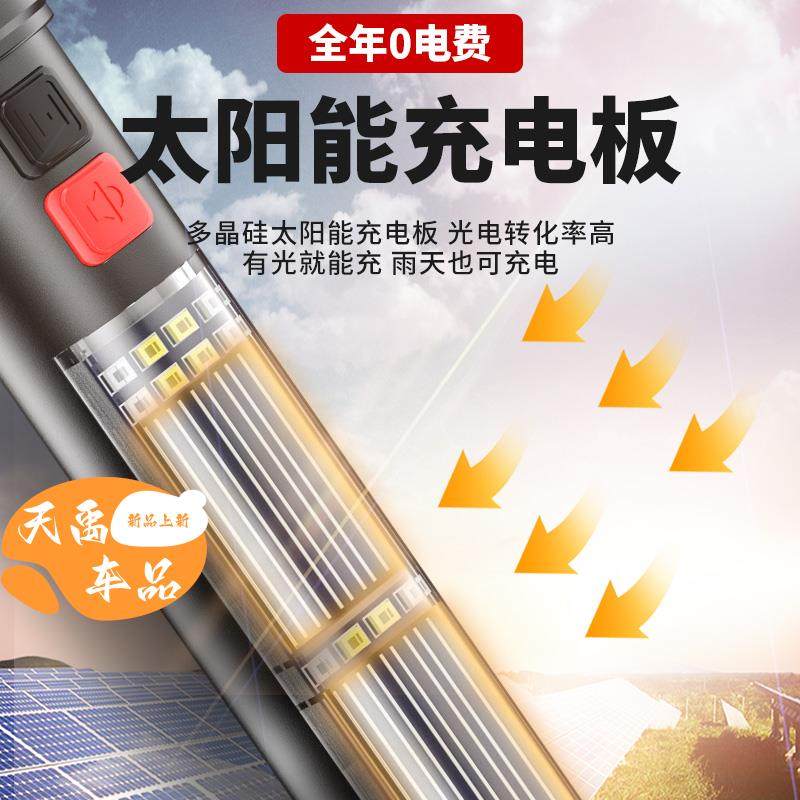 太阳能手电筒强光充电超亮户外远射多功能家用防身车载应急照明灯