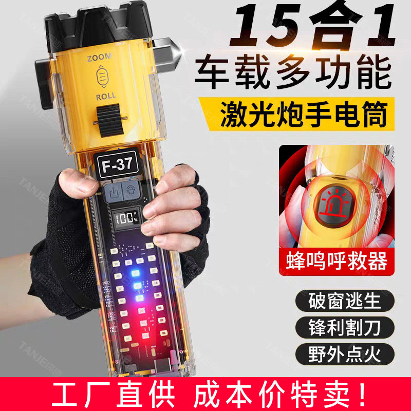 多功能强光手电筒家用应急照明灯超亮户外车载防身破窗便捷工作灯